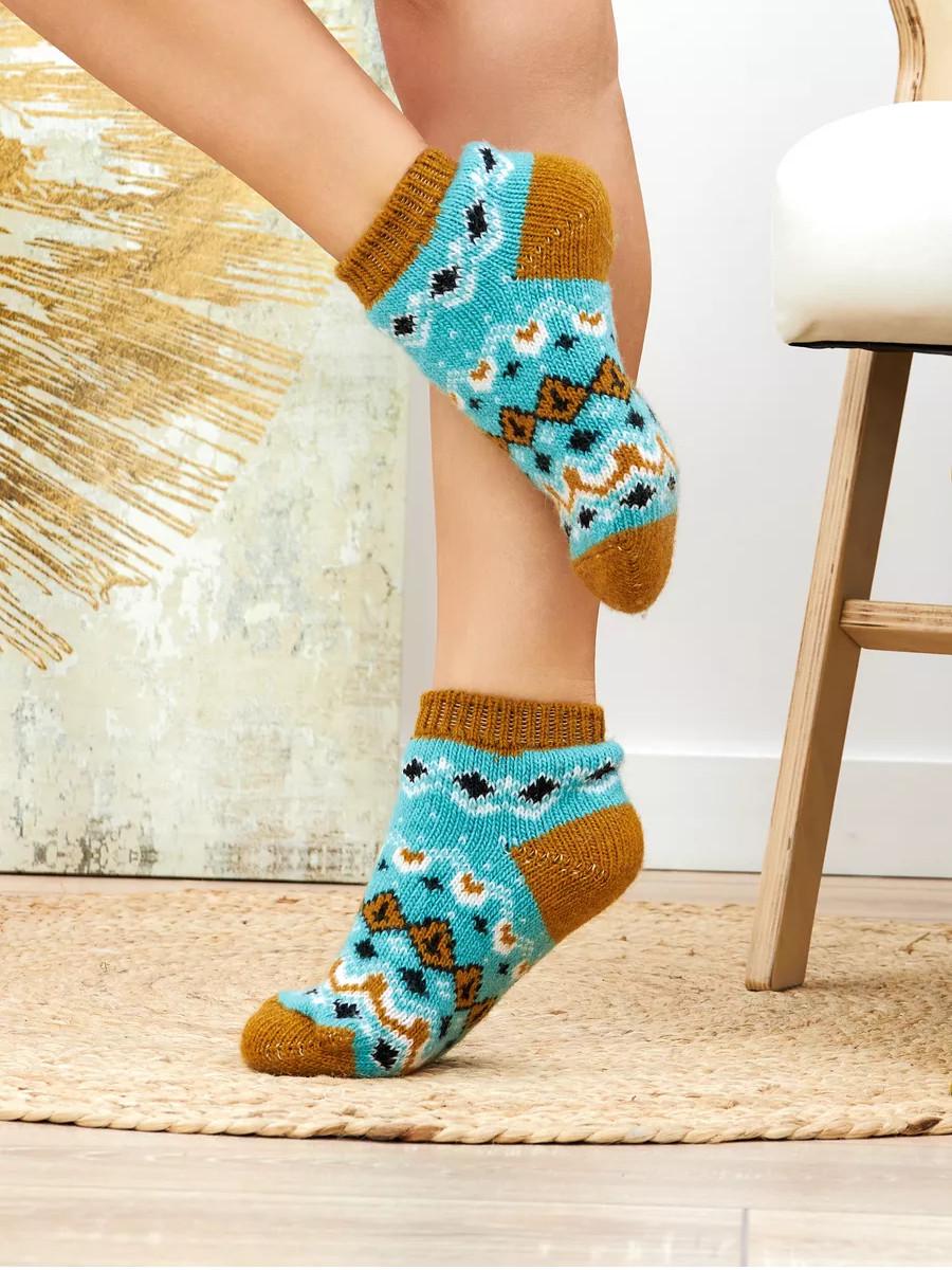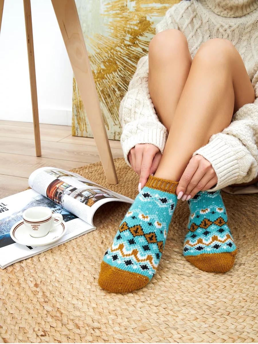 Теплые шерстяные и пуховые носки должны быть в гардеробе каждой современной женщины. Представляем Вашему вниманию вязаные, короткие носочки. Они не только создают комфорт и удобство, но и эффективно украшают дамские ноги. Данный, заниженный фасон, остаётся актуальным на сегодняшний день. Зимние носки обладают высокой прочностью и износостойкостью- помогут Вам в сильный мороз. Плотные следки, выполненные из натурального козьего пуха, благодаря чему они очень мягкие, приятные к телу, а также гипоаллергенные. Изделия нескользящие, а узкая резинка будет плотно облегать Вашу ножку. Яркие, цветные носки, с оригинальным, красивым рисунком, очень милые. Красивые узоры изображенные на носках будут всегда заряжать Вас позитивом! Они помогут не только сохранить ноги в тепле и уюте, но и улучшат кровообращение. Махровые подследники принтом не высокие, их можно использовать как спортивные и как термоноски. Собираясь на горнолыжные, рождественские мероприятия, они помогут создать Вам лучший образ. Новогодние, пушистые носки отличны в быту, домашних условиях(отлично смотрятся под тапки). Носки- прекрасный подарок любимой жене, девушке, коллеге, бабушке, сестре, на День рождения, 14 февраля, 8 марта, и другие праздники. Наши носочки связаны с любовью. Приобретая их Вы забудете о дискомфорте и холоде.