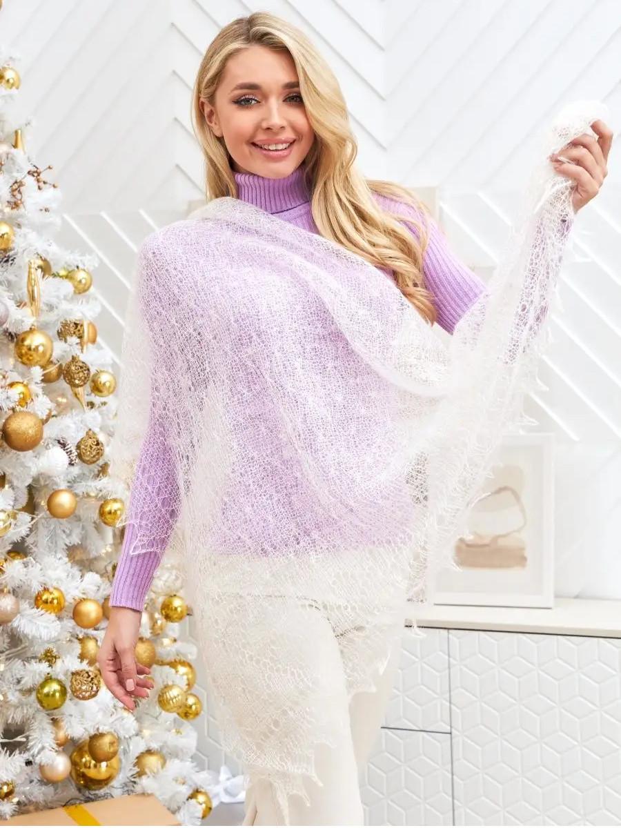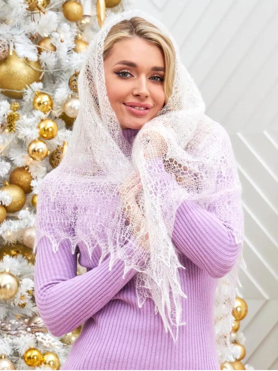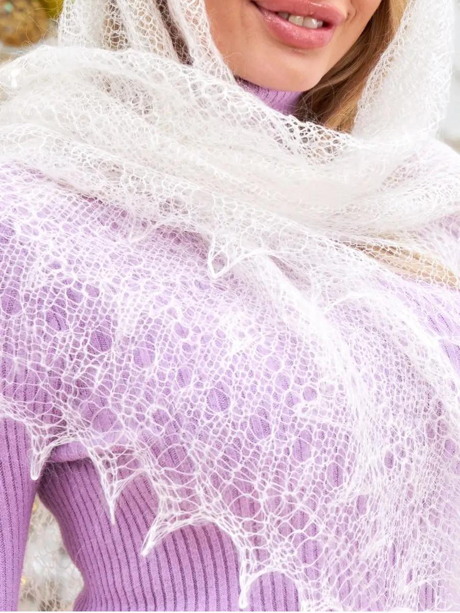 Женственность и практичность соединились в этом теплом платке на голову. Он станет вашим надежным спутником в холодные дни, обеспечивая исключительное тепло и защиту от ветра. Платок легко трансформируется в шаль или шарф, придавая вашему облику изысканность и неповторимость. Таинственно сплетенные нити рождают торжественный и очаровательный образ. Использование тончайшей пуховой пряжи позволяет изготавливать платки с неповторимыми по оригинальности и красоте узорами. Пуховые платки и шали — ажурное изделие ручной работы, изготовленное из козьего пуха и тонкой шелковой нити. Изготовленный из высококачественного козьего пуха, этот платок обеспечивает исключительную мягкость и теплоту. Узор - паутинка, украшающая платок, добавляет нотку элегантности, создавая легкий и воздушный вид. Эта ажурная отделка придает образу легкость и изысканность, делая пуховый платок идеальным выбором для повседневной носки или особых моментов. Наш пуховый платок также подходит для использования в храме, обеспечивая вам чувство уюта и благоговения. Он легко носится на голове, на шее или даже как шаль, создавая разнообразные варианты стилей для различных ситуаций. С этим теплым платком на голову ваш зимний гардероб будет полным. Откройте для себя уникальное сочетание тепла, стиля и элегантности с нашим пуховым платком – идеальным выбором для женщин, ценящих уют и красоту в каждой детали своего образа! Этот шерстяной платок станет прекрасным подарком для любимых представительниц прекрасной половины человечества, ему будет рада каждая мама и бабушка, тетя и подруга, свекровь и теща, сестра и племянница. Подарите вашу заботу о близком человеке вместе с брендом “Русские мотивы” ведь мы вкладываем в каждый заказ частичку души, обязательно упаковывая изделия в подарочный пакет и добавляя к заказу подарок в виде шерстяных носочков. С радостью ждем вас среди наших постоянных покупателей!