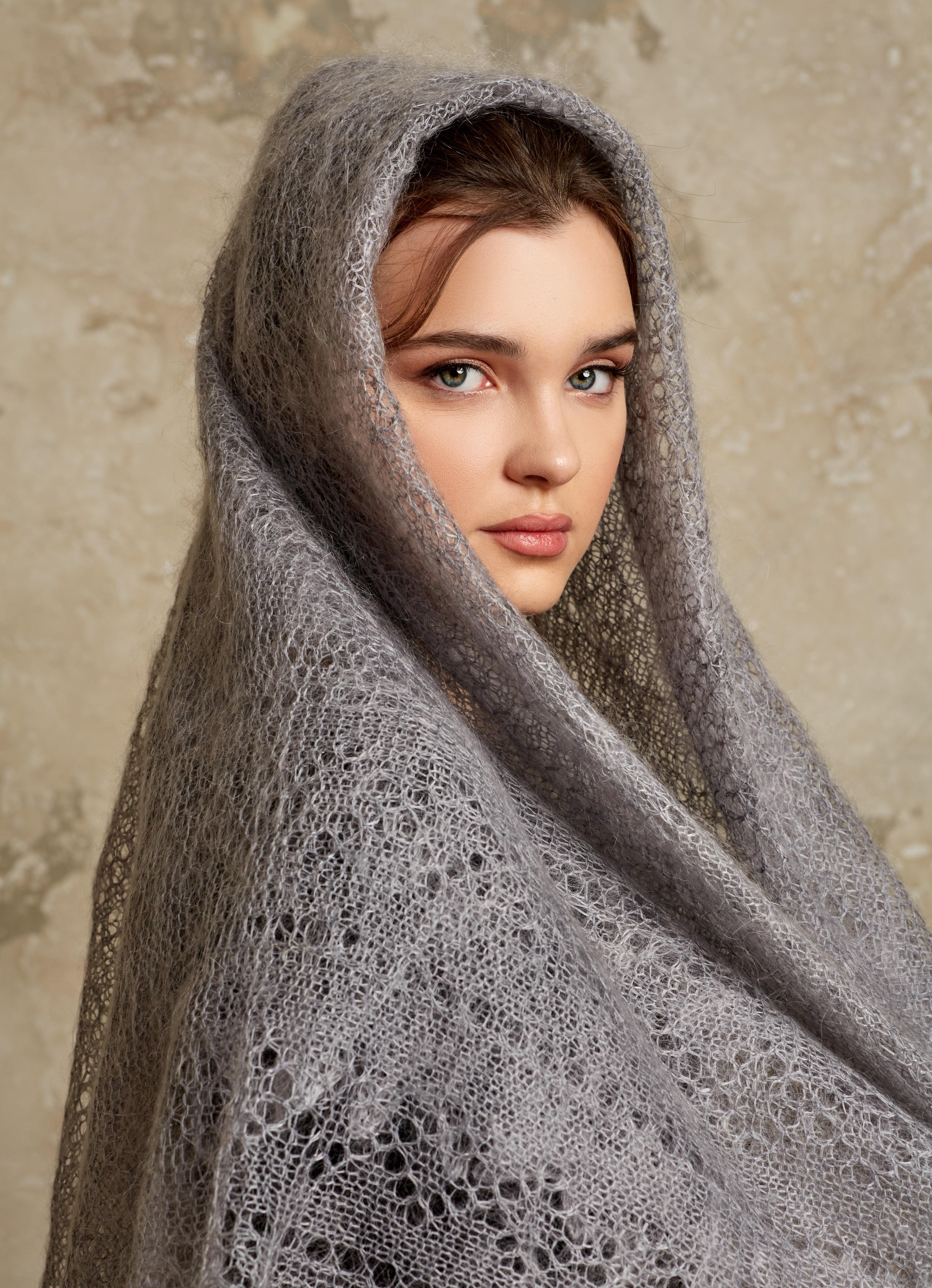 Представляем вашему вниманию пуховый платок Русские мотивы - настоящий шедевр мастерства пуховязания! Каждый пуховый платок - итог кропотливой ручной работы мастериц-вязальщиц с вложенной частичкой души! Платок вязаный женский передает всю красоту традиционного исполнения. Очарование и тепло сливаются в этом женском пуховом платке, созданном для тех, кто ценит комфорт и стиль в каждой детали. Платок является идеальным аксессуаром для создания уютного образа в зимний период. Женственность и практичность соединились в этом теплом платке на голову. Он станет вашим надежным спутником в холодные дни, обеспечивая тепло и защиту от ветра. Изготовленный из высококачественного натурального козьего пуха и нити х/б, этот платок обеспечивает исключительную мягкость и теплоту. Пуховый платок на голову теплый - нежный ажурный узор, украшающий платок, добавляет нотку элегантности, создавая легкий и воздушный вид для повседневной носки или особых моментов. Шаль пуховая женская также подходит для использования в храме, обеспечивая вам чувство уюта и благовения. Она легко носится на голове, на шее или плечах. С этим платком ваш зимний гардероб будет особенно уютным. Каждая деталь этого платка тщательно продумана для вашего комфорта. Пуховая структура создает эффектный объем, сохраняя при этом легкость изделия. Это не просто аксессуар – это произведение искусства! Пуховая шаль не только элегантна, но и универсальна. Сочетайте ее с повседневной одеждой в ежедневных поездках или дополните свой вечерний наряд для создания изысканного образа. Этот платок станет прекрасным подарком для любимых представительниц прекрасной половины человечества, ему будет рада каждая мама и бабушка, тетя и подруга, свекровь и теща, сестра и племянница. Подарите вашу заботу о близком человеке вместе с брендом “Русские мотивы” ведь мы вкладываем в каждый заказ нашу заботу, обязательно упаковывая изделия в подарочный пакет. С радостью ждем вас среди наших покупателей!