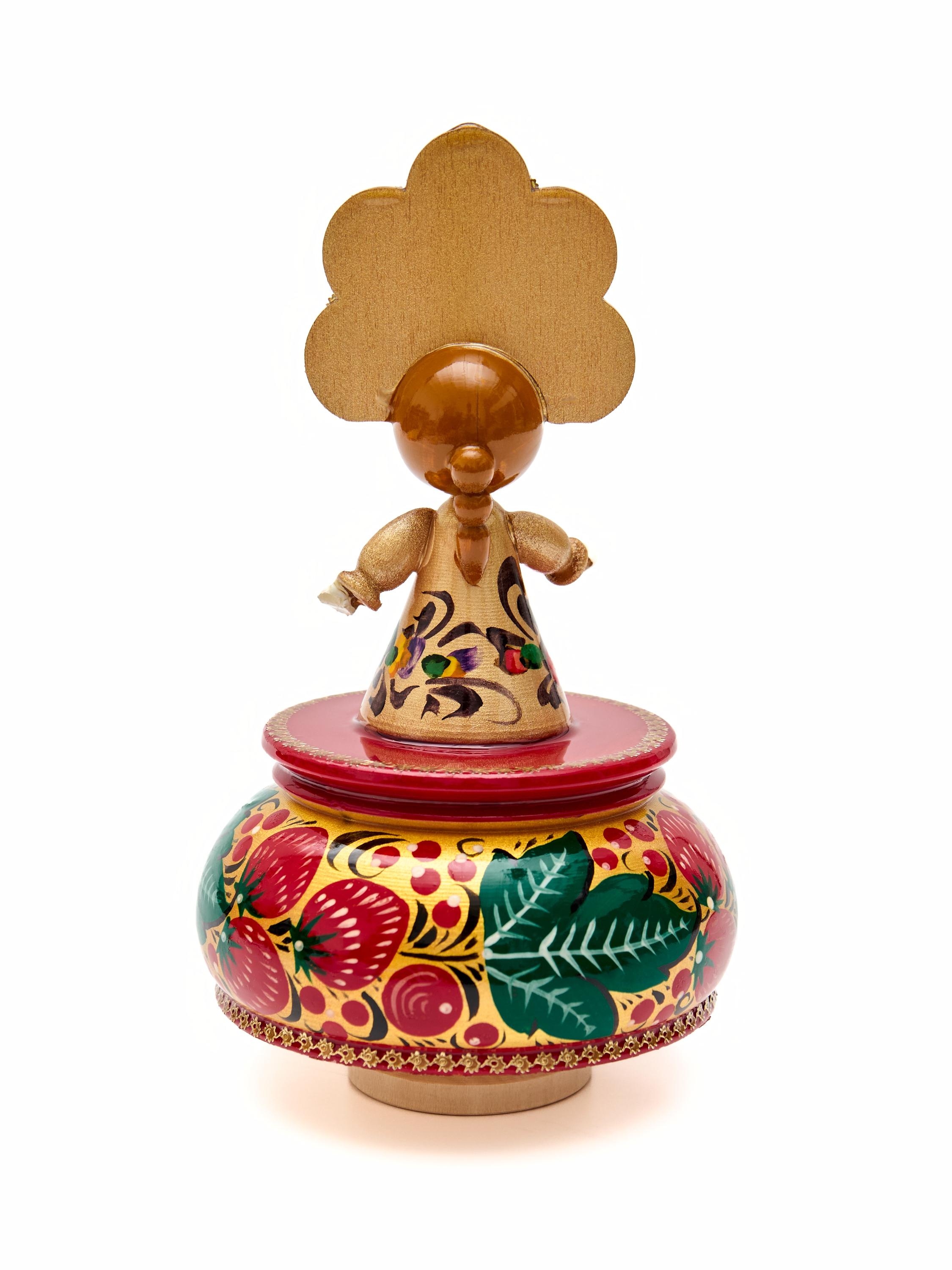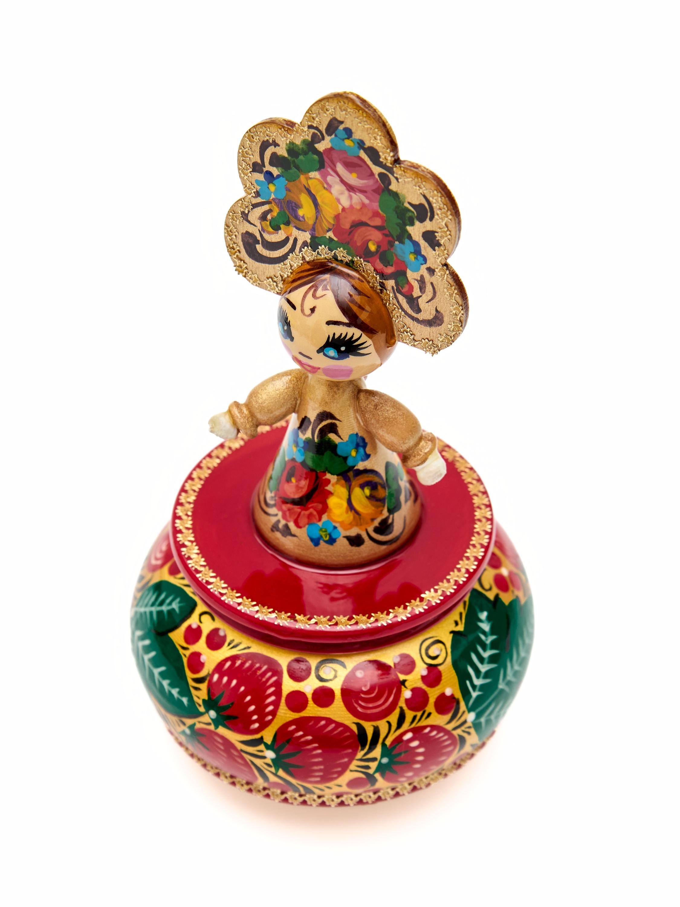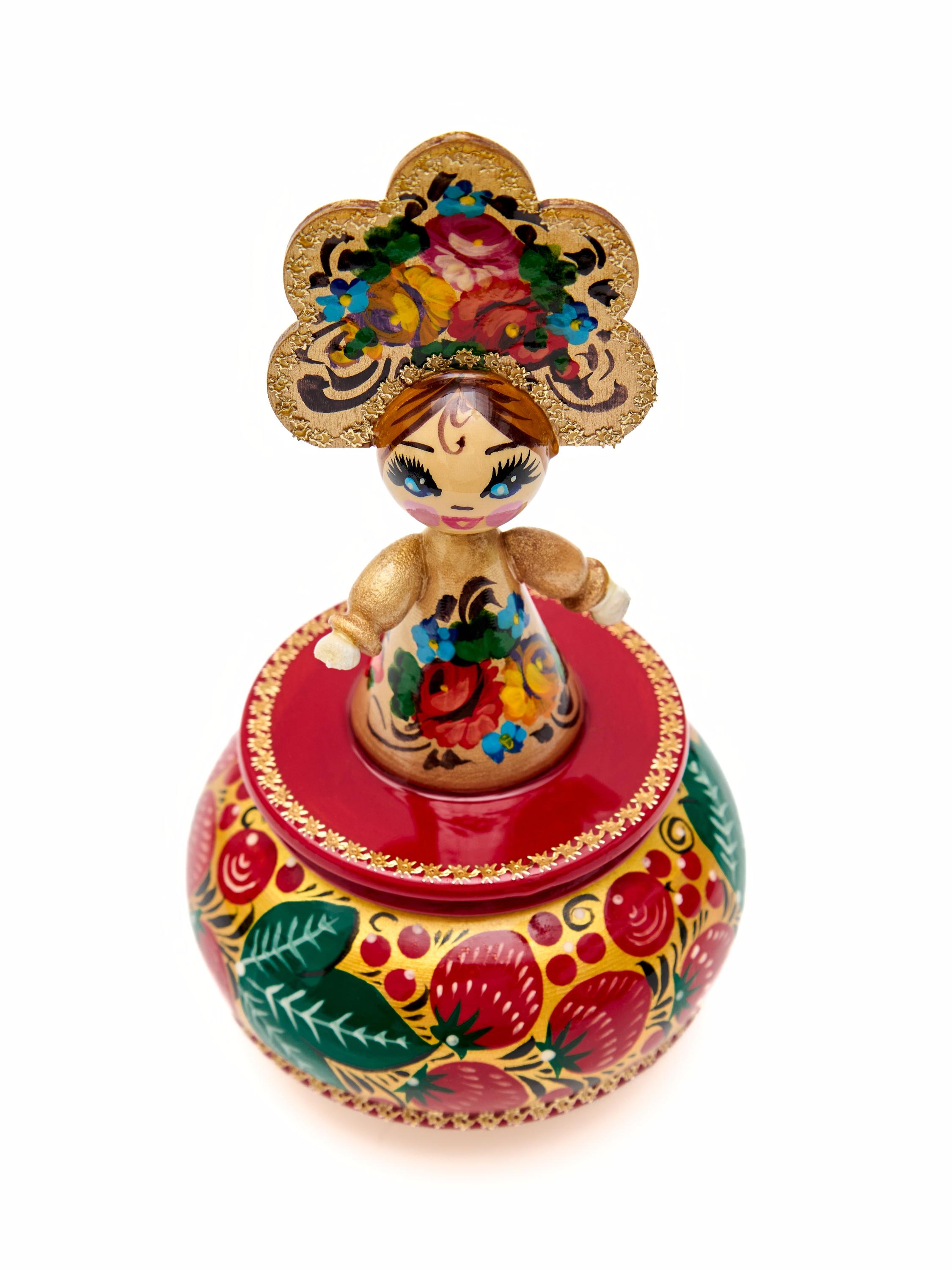 Этот сувенир ручной работы создан из дерева и украшен настоящей русской росписью - что делает его привлекательным и интересным для взрослых и детей.
