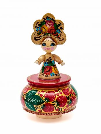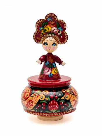 Русский сувенир музыкальный кукла в кокошнике золотой